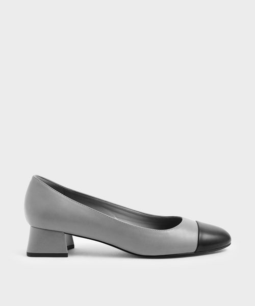 裾広がりのモードな太ヒールが目を惹くバイカラー仕立てのパンプス。 品のあるレザー調の素材や程よく丸みを持たせたトゥは、様々なテイストのコーディネートに合わせやすく万能に活躍してくれます。 バックスタイルにはメタリックラインを効かせ、控えめなアクセントに。 インソールにはクッションを効かせ、お洒落も履き心地の良さも両立させた一足です。 レザー調にバイカラー仕立てのNudeとGrey、スエード調とレザー調を組み合わせワンカラーでまとめたBlackの3色展開。 ※足幅 7.7cm 37サイズで計測しています ※STAFF着用レビュー/24/足幅広め/足幅がやや窮屈に感じました。薄手のソックスで合わせたいので38を選びます。ヒールが太く安定してとても歩きやすい一足です。