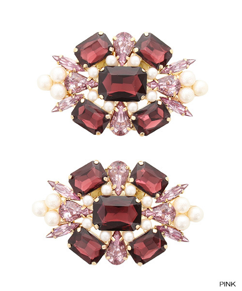 <結婚式やパーティーに♪> ■結婚式や二次会でも華やかに。 ◆2019AW新商品◆カラービジューとパールを使用したシューズクリップ。 コーディネートのポイントとして引き立つカラー展開になっており、普段使いはもちろん、 結婚式や二次会、パーティーにもおすすめです。