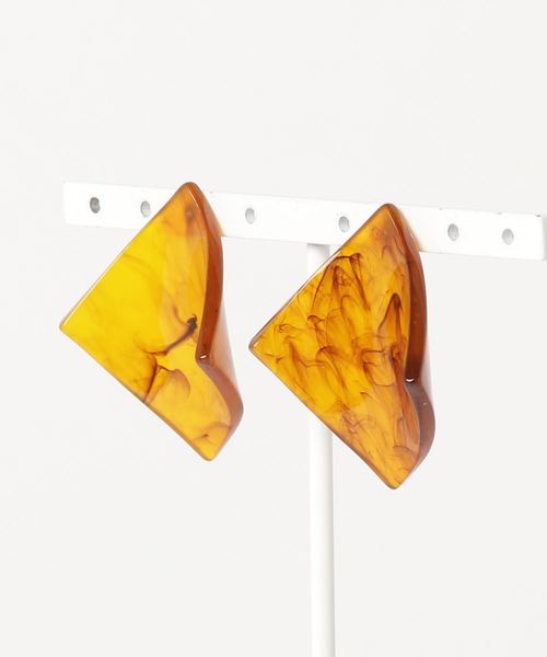 マーブル柄×緩やかな丸みアクセントに映えるアクリルカーブピアス。ワンプラスで顔まわりを華やかに彩ってくれる逸品は、抜群な存在感ながら軽量なのも◎個性的なデザインながら、さまざまなテイストに合わせて楽しめる、スタイリング力の高さも魅力です。