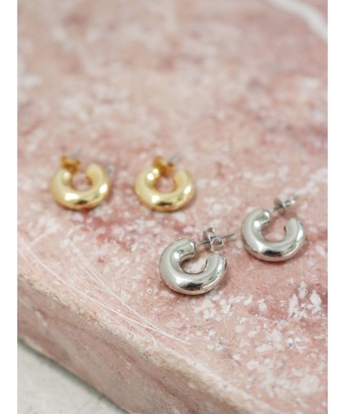 小ぶりなサイズのメタルピアス。 太めのカールデザインが大人な印象でスタイリングにもマッチします。 【※お取り扱い上のご注意】 この製品は、衝撃を加えますと破損する恐れがありますので、お取扱いには十分ご注意ください。