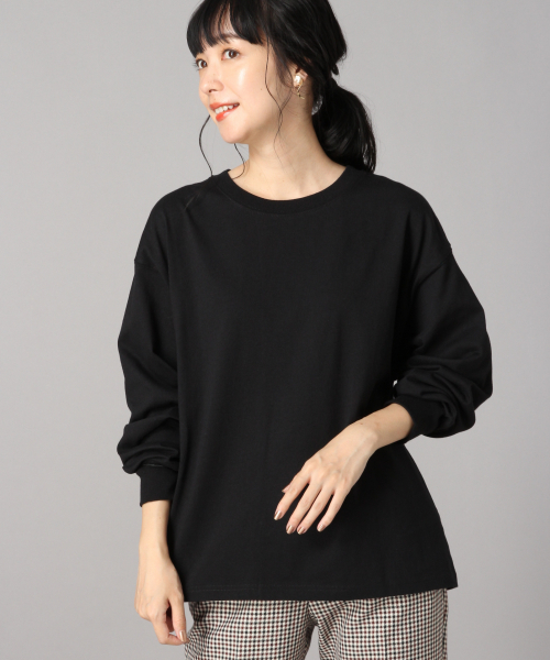 大活躍なシンプルロンT 去年も人気のUSA天竺を使用したベーシックなロンTです。シンプルなデザインなので、様々なアイテムとの着回しがしやすく、これからの季節に向けておすすめな一枚です★ レイヤードのインナーとしてはもちろんですが、 1枚でボトムにインして程よいボリューム感や、ゆるさが可愛いアイテムです!!
