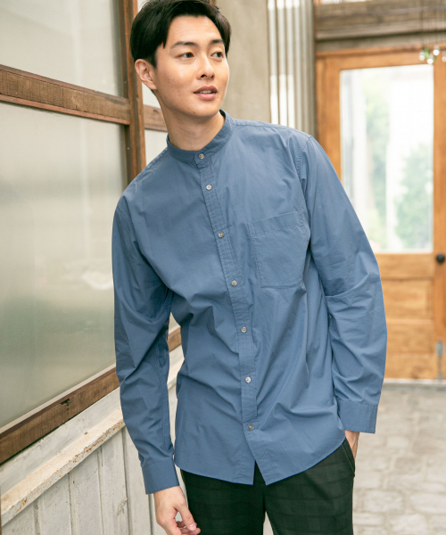 スムースタッチのバンドカラーシャツ細番手のハイカウントブロードに薄く起毛をかけて肌触りのよいスムースタッチに仕上げており、綿100%ながら、しわになりにくいイージーケアを実現しています。洗濯後は整えて干せば洗いざらしでも、カジュアルな雰囲気で着用いただけます。カラー展開は着合わせ万能の定番のホワイトに加え、今季らしいカーキやブルーをご用意しています。ワードローブの一着にオススメのアイテムです。