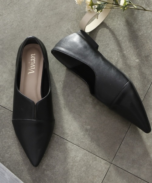 メンズライクなエッジの利いた存在感のある、ノーレースカッターシューズデザインは、ハンサムコーデかキマるので、足元に個性を出したい目立ちアイテムにはもってこいの一足です。トレンドのソックスやタイツと組み合わせコーデにも合わせやすく、着脱ラクチンな靴ひもなしデザインなのでささっと履けるのもうれしいポイント♪歩きやすいフラットヒールは、屈曲性のあるやわらかい底で力の吸収力がよく、さらに低反発クッションインソールが入ることで、足が痛くなりにくく疲れにくい機能性もバッチリ! フラットだけどポインテッドトゥでシャープな印象なので大人っぽく履けるので、オフィスでも大活躍。◇履きやすさのポイント◇・フラットで歩きやすいので、オフィスでも大活躍。・足が痛くなりにくく疲れにくい低反発クッションインソール・裏材は見た目がおしゃれ、足当たりもいい生地を使用・屈曲性のあるやわらかい底で力の吸収力がよく、足が痛くなりにくく疲れにくい。★☆★サイズ展開がS-3Lまで幅広くご用意しています。★☆★※カラーによりサイズ展開が異なりますのでご了承ください。<サイズ詳細>■S(22.0-22.5cm)■長さ:24.8cm/ワイズ:21.2cm/幅:7.9cm/ヒール高さ:1.0cm■M(23.0-23.5cm)■長さ:25.8cm/ワイズ:21.9cm/幅:8.0cm/ヒール高さ:1.0cm■L(24.0cm)■長さ:26.3cm/ワイズ:22.3cm/幅:8.1cm/ヒール高さ:1.0cm■LL(24.5-25.0cm)■長さ:26.8cm/ワイズ:22.6cm/幅:8.2cm/ヒール高さ:1.0cm■3L(25.0-25.5cm)■長さ:27.3cm/ワイズ:23.0cm/幅:8.3cm/ヒール高さ:1.0cm※サイズスペックについては、VivianCollection独自の方法により採寸しております。
