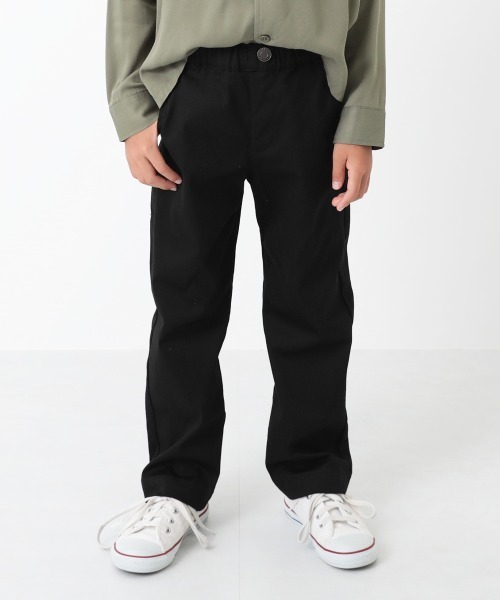 程よいワイドシルエットの『ワークパンツ』定番ながらもゆったりめのシルエットが、ラフなスタイルを演出してくれます。シンプルなデザインなのでキレイめからカジュアルまで様々なコーディネートを楽しめます。■素材■光沢感としっかりとしたハリ感のあるチノ素材ほどよい厚みがあり、美しい風合いのチノ素材。カジュアルになりすぎず、上品な印象に仕上がります。■ディティール■伸縮性:あり・ウエストゴムでラクな着心地。ゴムの取替え口付き・両サイドにポケット付き・裏側にお名前タグ付き