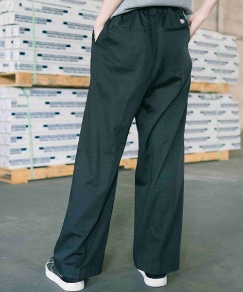 BRAND STORYC.N.ウィリアムソンとE.E.ディッキー。Dickiesの共同創業者であり、いとこ同士である2人がワークウェアの生産を開始したのは1920年代。またたく間にアメリカ全土に深く浸透していきました。90年代には、全米にストリートカルチャーのブームが到来。西海岸のスケーターたちが丈夫で価格も手ごろな「874」を愛用したことで、各分野のアーティストへも浸透。人気は日本や世界各地のカルチャーシーンへと飛び火し、やがてDickiesはワークウェアとしてだけでなく、ファッションブランドとしての地位も確立します。-Detail-ディッキーズ定番のTCツイルを使用したワイドパンツ!サイドファスナー、腰裏にゴムが入ってたキレイ目カジュアルスタイルです。ワークパンツでも採用されているTC素材を使用し、雰囲気満点のパンツに仕上げました.しっかりとした生地ながら、ウエストゴムのギャザータイプなので穿き心地もラクラク。裾が長めのフレアシルエットがトレンド感あるディテール。-Styling-開襟シャツを羽織り、アロハシャツなどの開襟シャツにクリアバッグ、スニーカーサンダルを合わせればトレンド感ある着こなしに!ビッグシルエットのTシャツワンピースにサコッシュを合わせ、スポーツサンダルで動きやすさを求めるのも良いです。