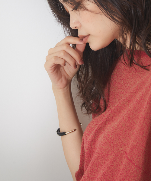 メタル×レザーがモードなバングルメタルとレザーを合わせたトレンド感のあるバングル。シンプルなデザインなので、デイリー使いしやすいのがポイント♪程良く存在感もあり、手首を華奢に見せてくれます。ご自分用にはもちろん、プレゼントやギフトにもおすすめのアイテム。