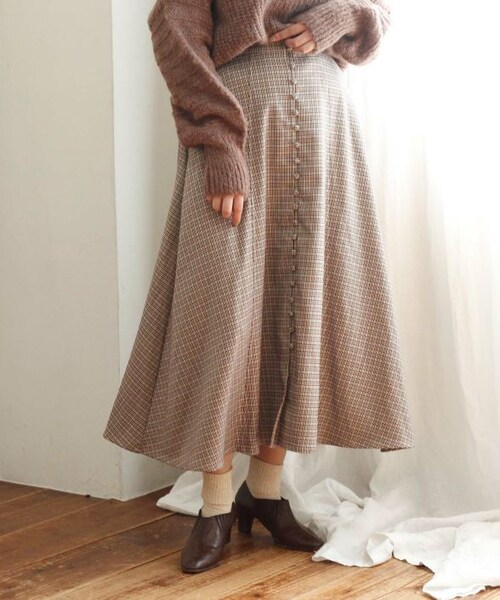 大人っぽい印象のフレアスカート。 程よい厚みがある生地でできていてサラッとした肌触りです。 ウエスト部分はすっきりしているので厚手のニットとも合わせやすいです。 ベージュ、ブラウンの2カラー。