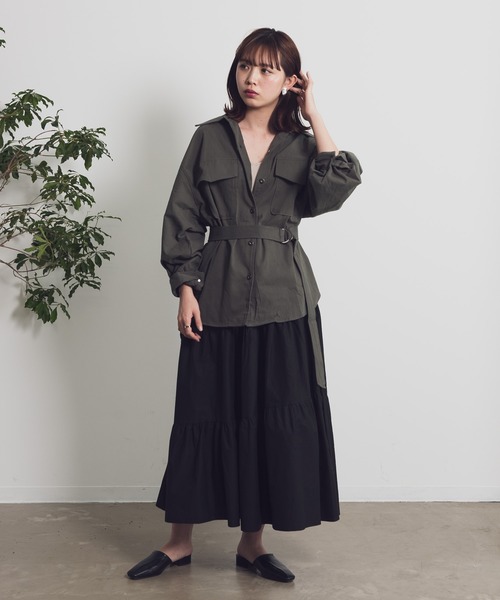 【AUNT MARIE'S ベルト付きサファリシャツ】 トレンド感溢れるメンズライクなサファリシャツ 《styling》 羽織るだけで様になる今年トレンドのサファリシャツ。 1枚で着用したり、Tシャツやデニムと合わせてカジュアルに着こなすのはもちろん、 ワンピースなどとのレイヤードスタイルにも相性抜群。 程よくカジュアルさをプラスしてくれ、女性らしいスタイリングに◎ 《detail》 程よい厚さのルーズなサイジングが大人女子ののこなれ感を演出。 ウエストを絞っていただくと雰囲気が変わりスッキリとした印象に仕上がります。 胸元のポケットも程よいアクセントになりバランスも◎ 《fabric》 程よい厚みと柔らかな手触りが気持ちいい綿素材。 ※詳しいお手入れ方法は商品タグをご参照ください。 【商品のお気に入り登録】 完売カラーの再入荷通知やラスト1点の通知 プライスダウンの通知も受け取ることができます。 ぜひご登録ください◎ 【ブランドのお気に入り登録】 新商品や再入荷など、 ブランドの情報をいち早くお知らせします! ぜひご登録ください◎