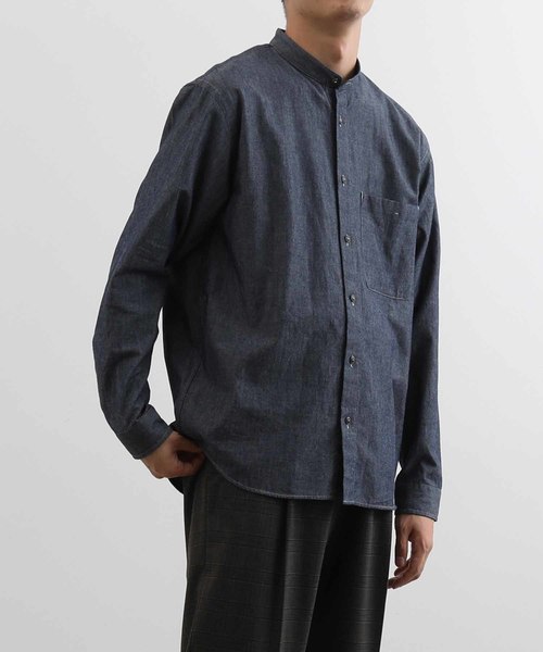 どんなコーデにもハマる、リラックスシルエットのバンドカラーシャツ。Material 【22】100/2×80/1 とハイカウントの細い糸を使用したポプリンストライプです。ブラウン系のベースにブルーのストライプが今期の気分。 【28】綿/レーヨン/ウールの3素材を使用しており、レーヨン特有のドレープ性とウールの温かみを持たせた、オンブレーチェックの生地になります。 【40】ヨコにウール混の糸を使用したダンガリー地です。ウール混の上品さがありながら、家庭洗濯できるイージーケア性が特徴。 Design リラックス感のあるシルエットのバンドカラーシャツ。スタンダードなデザインの為、どんなコーデにも使える便利な1枚です。