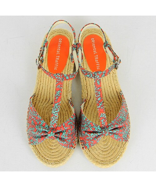 ギャザーを寄せたリボン風のデザインが可愛らしいサンダルは、ジュートソールでリラックス感をプラスし大人可愛い仕上がりに。華奢なTストラップでフラットヒールでも足元をすっきり見せてくれるのも嬉しいポイント。