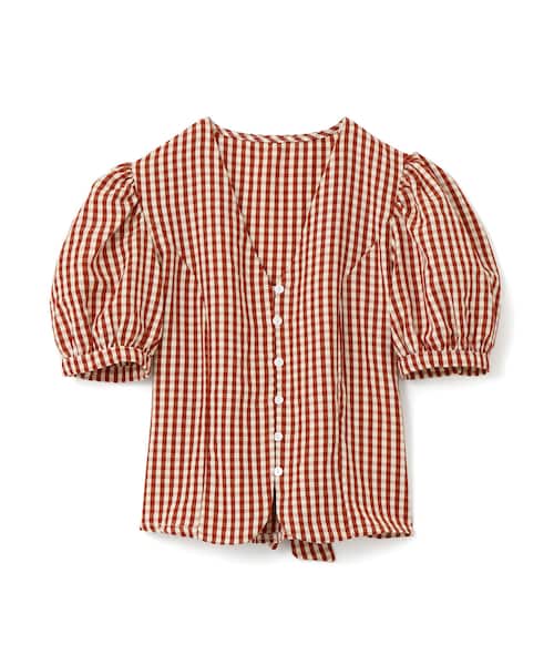 たっぷりとしたボリューミーな袖がポイントのギンガムチェックブラウス。 フロントボタンがレトロチックな1枚。 デコルテを綺麗に見せてくれるVネックラインが女性らしい雰囲気を演出。 ウエストリボンは前後どちらでも結べる、嬉しい2Wayスタイル。 ★裁断の関係で、柄の出方が写真と多少異なる場合があります。