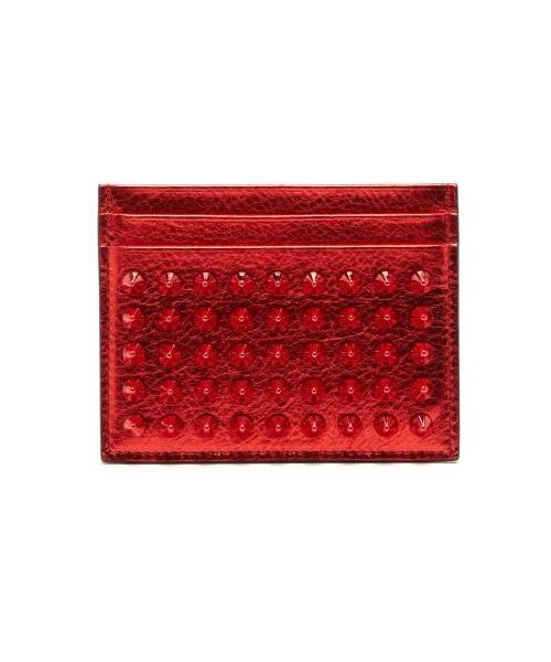 Christian Louboutin - Christian Louboutin's red M Kios cardholder is adorned across the front with high-shine spikes for a signature finish. It's crafted from metallic leather and framed by black lacquered edges and is discreetly logo debossed at the back and plays host to a central slip pocket and four card slots. Enjoy how it fits perfectly into the most compact of clutches after dark.