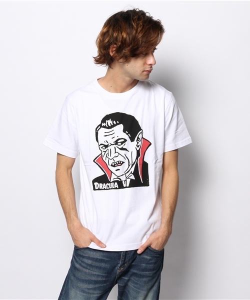 胸元にモンスタープリントをのせたカットソー。柔らかで肌触りの良い生地を使用しており、ストレスなく着用して頂けます。ドラキュラやフランケンシュタインなど、遊び心溢れるプリントデザインでご用意しました。一枚で着用頂くのは勿論、インナーとしてのアクセント使いもオススメ。また、男女問わずユニセックスでお使い頂けるので、ご自身用は勿論、プレゼントにもオススメです。 店舗にてお問い合わせの際は、下記の品名・品番をお申し付け下さい。品名:モンスターTシャツ 品番:B14SM-1201-075 modelH175 B87 W69 H86 着用サイズ:MEDIUMmodelH163 B86 W60 H87 着用サイズ:MEDIUM WEGOの特集ページはコチラ