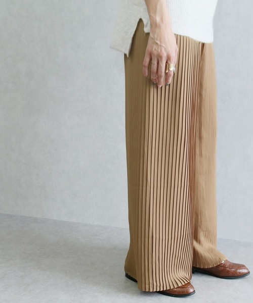 ■ポイント■ ゆるいシルエットでリラックスした着心地のプリーツワイドパンツ 程よいワイドシルエットでゆるっとリラックスした印象に。 トップスもビッグシルエットで合わせた今年っぽい着こなしがおすすめ。 ウエストゴムなので身長に合わせて丈の長さを調節も♪ ■生地感■さらっとした生地感とストンとした落ち感できれいなシルエットを演出してくれます。 ※モデル着用写真は撮影環境により、多少実際のカラーと異なる場合がございます。予めご了承をお願いいたします。 ※サイズは現物をスタッフが平置き採寸したものになります。 ※生産時期により若干の色ブレやサイズの変動が生じる場合がございます。予めご了承くださいますようお願いいたします。 生地の素材や種類によってシワになりやすいもの、または同じ素材でも製造時期によって異なる場合がございます。