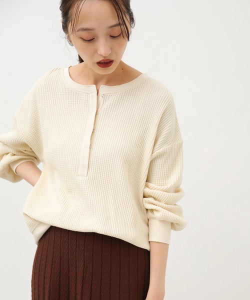 オーガニックコットンのワッフル素材を使用した長袖カットソープルオーバー。ホックのついたヘンリーネックですっきりと着ることができ、スタイリッシュな印象に。ボリューム感のある袖フォルムが可愛らしく、フェミニンな着こなしが叶うのもうれしいポイントです。ORGANIC COTTON ⁂- オーガニックコットンを原料に使用しています -有機栽培農法で栽培したコットンを使うことで地球環境へのダメージを軽減し原料生産者の健康に配慮します。● earth music&ecology ●(アース ミュージック&エコロジー)流行とナチュラル感を取り入れ、幅広い層に向けて発信するブランド。オシャレ着から通勤、カジュアルまで女性の様々なシーンで楽しんでいただけるナチュラルガーリッシュなアイテムを展開。 ▼ 商品のお気に入り登録がおすすめです ▼商品ページ内のハートマークをクリック。完売時の再入荷や、最後の1点の通知、コーディネート画像がアップされたとき、お得なお値下げの際の通知を受ける事ができます。【お知らせ】ページでも通知が確認できます。