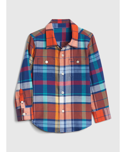 滑らかな織り地長袖、ボタン付きカフススプレッドカラー、ボタンフロント胸にボタン付きパッチポケットラウンドカットの裾プラッドの総柄ストレートイージーフィット*商品タグに記載の価格とサイト上の販売価格が異なる事があります。