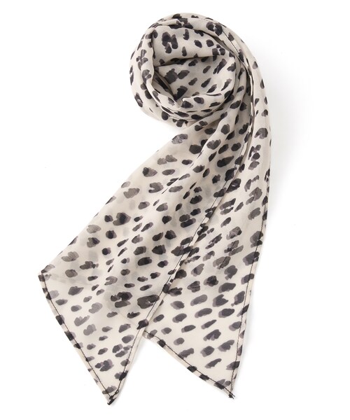 落ち着いたカラーリングでまとめたダルメシアンプリントが目を惹くスカーフ。 スタイリングしやすいナロータイプで、もたつかずにすっきりと付けられる。 1点取り入れるだけでこなれ感のある印象を与えてくれるアイテム。 コーディネートのアクセントにはもちろん、ヘアスタイルやバッグにプラスするのもオススメ。 ★裁断の関係で、柄の出方が写真と多少異なる場合があります。