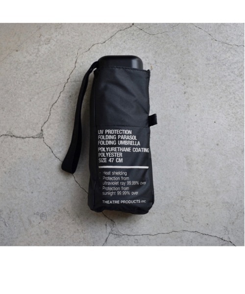 晴雨兼用折り畳み傘が登場 生地裏面にポリウレタンコーティング加工が施されているため遮熱効果があり、遮光率は99%以上。 またUV加工も施され、紫外線カット・遮光率は共に99.99%以上。撥水・防水加工で晴雨兼用でご使用いただけます。 突然の雨や日差しの強い季節にもぴったりです。 コンパクトでとても軽いので小さなバッグにも忍ばせておける便利なアイテム。 小さな日陰を作ってくれる傘があるだけで、強い日差しが苦手な方のお出かけも気持ちを和らげてくれます。 ※重量:200g ■THEATRE PRODUCTS(シアタープロダクツ) 「洋服があれば世界は劇場になる」をコンセプトに2001年設立。エレガントで女性らしいウエアと、ユーモアとウィットに富んだアクセサリーなどをとおして、ファッションブランドにおきるすべての出来事を舞台にあげてスポットライトを当てる。 デザイナーを武内昭と森田美和が務める。