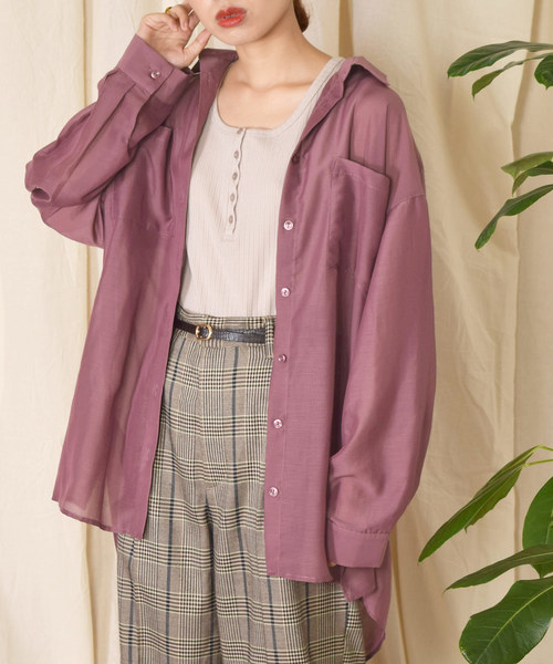 今季トレンドのシアーシャツがw closetから新登場 透け感のあるサラっとしたシアー生地が今年っぽく、着心地も抜群。シンプルだからこそカラー、シルエットにこだわりました。長めの丈感なので気になる部分もカバーでき、脇に入ったスリットが大人っぽい。スモークミントとラベンダーのくすんだ色味が他に無く、1枚で今年っぽくサマ見えするアイテムです。1枚でトップスとしても、羽織りとしても使える万能シャツ。胸元のポケットがアクセントになり、ボトムを選ばず着ていただけるのも嬉しいポイント。今季トレンドのシアーシャツは、1枚持っておくと重宝すること間違いなし。 スタイリング シンプルなリブのタンクトップに羽織るのが今年っぽい。ボトムはプリーツパンツやケーブルパンツと合わせてゆるっとコーデに◎。ウエストに細めのベルトを巻いてまた違ったシルエットを楽しんでみるのもオススメです。 【お買いものにおすすめの便利機能!】 ★商品のお気に入り登録 完売カラーの再入荷の時や、ラスト1点の時、セールになった時にお知らせします。 ★ブランドのお気に入り登録 新商品や再入荷、セール情報など、いち早くブランドのお得な情報を受け取ることができます。 ぜひご活用ください!