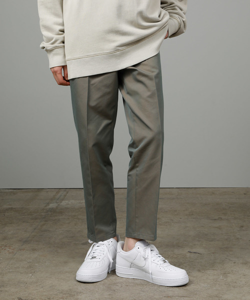 40番手の双糸で密度が高く織られた手触りのよいT/Cのギャバジン生地軽くてハリがあり程よい肉感なのでシーズン問わずちゃくようができさりげない光沢がクリーンな素材ストレスのないワタリからゆるいテーパードで着用時のシルエットが非常にきれいなアイテムバックポケット上にはRSのシグネチャーロゴ刺繍