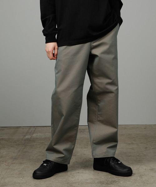 40番手の双糸で密度が高く織られた手触りのよいT/Cのギャバジン生地 軽くてハリがあり程よい肉感なのでシーズン問わずちゃくようができさりげない光沢がクリーンな素材 ワイドシルエットですがクリーンな素材がどんなスタイリングにも合わせやすい利便性の高いアイテム バックポケット上にはRSのシグネチャーロゴ刺繍