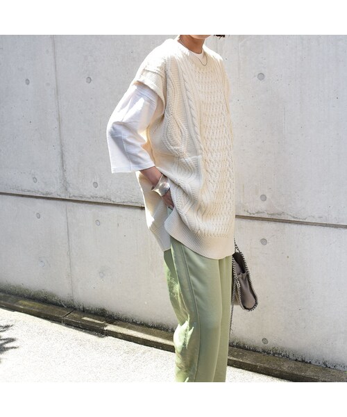 ◆アイテム詳細◆ 様々なパターンのケーブル編みの組みあわせた今季注目のニットべスト。 肩がしっかりと隠れる長さのため、レイヤードスタイルはもちろん、秋口に一枚で着てもおしゃれです。 ゆったりとしたサイズ感と広いアームホールは、ロングシャツやTシャツ・ブラウスなどとの重ね着をお楽しみいただけます。 ーーーーーーーーーーーーーーーーーー 【COLOR】アイボリー・ブラウン 【SIZE】Fサイズ 平置き(㎝) 着丈 80 天幅 60 身幅 58 裾幅 50 (サイドスリットあり) 【素材】本体 アクリル100%