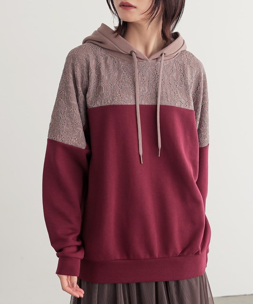 \あの大人気のパーカーが復活!!/お客様のお声にお応えしてレース×配色デザインパーカーが復活。『「再販うれしい!」の声続々。他と差がつく、唯一無二の大人可愛いデザイン。』【ラフ×エレガントな新定番スタイル】・スウェット生地とレース生地をドッキングした異素材ミックスデザイン。 いつものコーデが華やかでお洒落に決まります。・一着で一味違ったセンスが手に入る♪ 細部までこだわりが光る、ゆったり異素材デザインパーカー。【配色と素材にこだわった、大人の万能パーカー】・絶妙なバランスのレース× 無地の切替は、フードの中や金具まで計算された配色デザイン。 ベーシックなシルエットと程よいデザイン性だから、無地から柄物ボトムスまで着まわし力も抜群です!・レースをドッキングしたスウェット生地は柔らかく程よい厚み。 これからの季節はもちろん、ロングシーズンで活躍するプルオーバーです。【「普通のパーカー・トレーナーは物足りない!」周りと差がつくデザイン】・サイドの切り替えが縦のラインを強調し、着痩せ効果も期待できる優秀シルエット。・カジュアルすぎないきれいめパーカーなので、ランチ会や旅行などのお出かけにもぴったりです。シンプル派も着てみて納得!すっと溶け込む華やぎレース。ありそうでなかった「大人可愛い」を凝縮した、個性的長袖ドッキングパーカー。.........................................n'OrLABELほかにない、私のデイリーウェア毎日の生活を心地よく自分らしく過ごすための服。遊び心を取り入れた、大人のカジュアルスタイル。.........................................