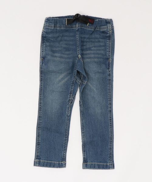人気の”ナローパンツ”のキッズモデル!ストレッチ入りのコットン素材で伸縮性があり、細身ながらアクティブに動きやすい。全体的にテーパードのかかった裾にかけて、細見なシルエット。伸縮自在で動きやすいストレッチ素材を採用。ウエストはゴム仕様で、おこさまでも片手でカンタンに調整できるベルト付き。ウエスト裏にも、ゴム調節のできる、ボタン留め付きのゴムが入り、着脱のストレスも軽減されています。180度自然な開脚を可能にしたガゼットクロッチデザインはアクティブな動きにも◎アウトドアはもちろん、野外フェスやキャンプ、普段着にと幅広く着こなせ通学着にも安心、らくちんな1本です。【GRAMICCI / グラミチ】1982年、カリフォルニアの小さなガレージで産声をあげる。アメリカ・カリフォルニア州中部に位置するヨセミテ国立公園。ロッククライマーの聖地である、このヨセミテで生まれたのが、『GRAMICCI』である。1970年代、アメリカで “ストーンマスター” と呼ばれ、ヨセミテロッククライミングをリードしてきた一人のロッククライマー、マイク・グラハム氏が、当時のクライミングウェアにはなかった、180度自然な開脚を可能にした「ガゼットクロッチ」や片手で調整できる「ウェビングベルト」など画期的なディテールを開発。1982年、これら独自の手法と機能を盛り込んだ『GRAMICCI』のクライミングパンツはカリフォルニアの小さなガレージでその産声を上げた。『GRAMICCI』の考案したデザイン、そして数多くのディテールは、クライミングパンツにおけるひとつの完成形であり、多くのブランドがこのディテールを取り入れている。