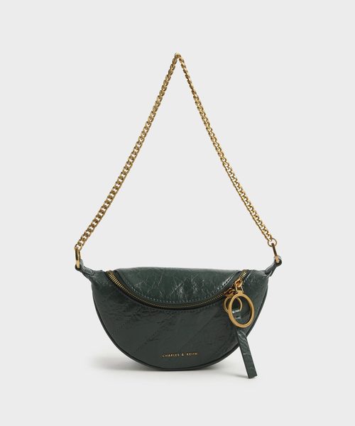 【オンライン限定カラー:Black・White】 立体的なハーフムーンシルエットが目を惹く3WAYバッグ。 太ストラップ、細ストラップ、チェーンストラップの3種類を完備したハイスペック仕様。 コーディネートや気分に合わせて気軽にイメージチェンジができる優秀アイテムです。 柔らかなレザー調にシワ感を持たせたユニークな質感も特徴的。程よく個性を効かせたオリジナリティ溢れる一品です。 Dark Green、White、Black、Beige、Burgundyの豊富な5色をご用意しました。 ※取り外し可能アジャスター付きストラップ(細×1、太×1)
