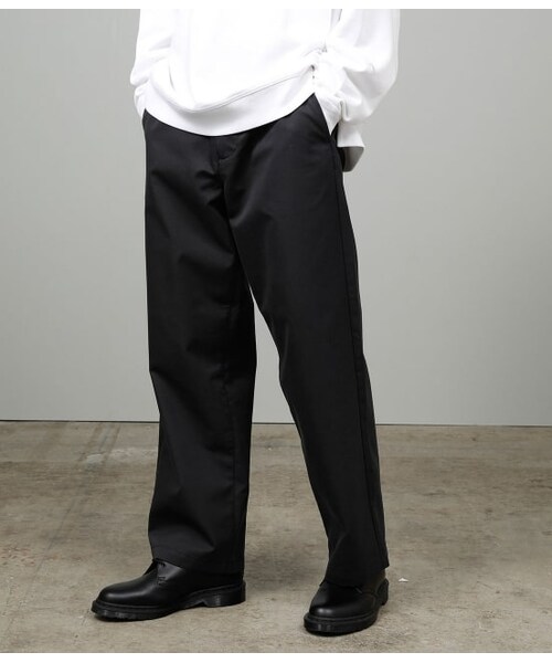 40番手の双糸で密度が高く織られた手触りのよいT/Cのギャバジン生地軽くてハリがあり程よい肉感なのでシーズン問わずちゃくようができさりげない光沢がクリーンな素材ワイドシルエットですがクリーンな素材がどんなスタイリングにも合わせやすい利便性の高いアイテムバックポケット上にはRSのシグネチャーロゴ刺繍