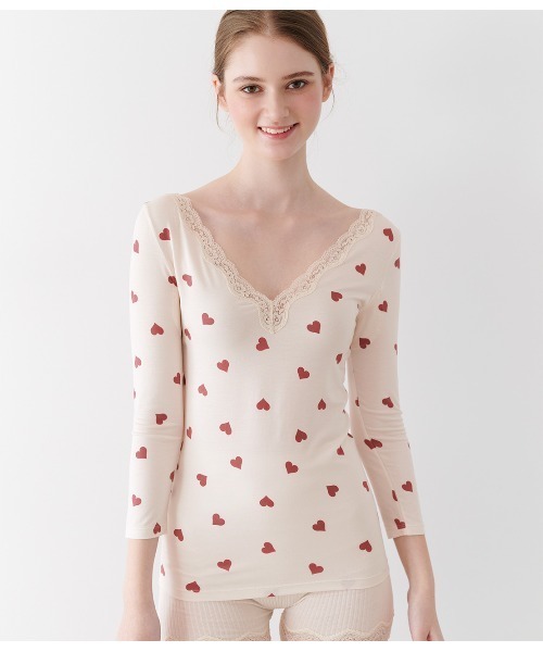 【保湿加工】レビュー高評価!着やすい前後Vネック。乾燥する時期にもうれしい。【おすすめポイント】・とろけるような着心地でレビュー高評価&ロングセラーのインナー。・薄手でボディにぴったりフィット。洋服をすっきりと着こなせる。・スタンダードな9分袖。前後とも深いVネックで、トップスの襟あきからのぞきにくい。・生地にアロエ成分を使用した保湿加工を施し、乾燥する季節にうれしい。・脇に抗菌防臭・消臭加工を施した汗取りパッド付き。【こんな人、こんな時に】・寒い季節の防寒対策に・服からインナーのチラ見えが気になる方に・タイトなシルエットのトップスをすっきり着たい【デザイン】・ネックラインにストレッチレースをトリミング・腰骨を覆うくらいの丈【素材】・身生地はとろみがあり肌ざわり抜群の、薄手レーヨンベア天竺。ストレッチ性にすぐれ、ボディにフィットして着ぶくれしにくい・肌と生地の間にすき間ができないから、あたたかさを逃がしにくい・生地にアロエ成分による保湿加工[スミクロ]定番の無地ブラック。レースもブラックで統一。[ヘザーグレー]スタンダードな杢グレー。レースも近い色味のグレーでシンプルに。[ピンクベージュ]肌なじみの良いベージュに、ホワイトでレース柄をプリント。レースもベージュ。淡い色味の服にも透けにくい。[ホワイト×レッド]ホワイトのベースに、レッド系の小花を散りばめた可憐なプリント。レースもホワイト。[ドット]ココアブラウンをベースに、モノトーンのプチハートとリボン柄をプリント。一見ドット柄で、さりげない可愛らしさ。レースもブラウン。[グレイッシュベージュ]くすんだラベンダーカラーをベースに、ブルーグレーの濃淡で大人っぽいブーケ柄をプリント。レースはライトグレー。[アイボリー]アイボリーの身生地に、落ち着いたレッドのハート柄を散らしてキュート。ネックのストレッチレースもアイボリー。【とろけるような着心地+保湿加工-It’sモイスティ- 】薄手のレーヨンベア天竺はとろみがあって伸びが良く、しっとり肌に吸い付くようにフィット。着ぶくれせず、肌と生地の間にすき間ができないからあたたかさを逃しにくい。さらに乾燥が気になる季節に嬉しい保湿加工付き。同じシリーズのアイテムはこちら↓↓下記のコードで検索すると探しやすいです!【肌ざわりやみつきの高機能インナー★「It'sモイスティ」シリーズ】▼お揃いアイテムの商品コードはこちら▼・キャミ:97703572・9分袖ショート丈:99453340・2WAYオフショル9分袖:87815576・半袖:97703573・スリップ:53877419・HARAボーイ(腹巻き付きパンツ):97703574・HARAマキレギンス:87815735※生地:程よい伸縮性あり(全方向)、保湿加工、ワキパッドのみ抗菌防臭・消臭加工◎商品により柄の見え方が異なる場合があります。*****************スタッフ着用コメント*****************◆スタッフS・N◆・身長体重:151cm/45kg・普段のサイズ:S・普段のブラサイズ:E65(柔らかめな肉質)・カラダの厚み:薄い<着用サイズ:S>・着用感:普通・丈感:手首上5cmの袖丈/ヒップ半ばの丈・透け感:あり(エクリュ着用)・生地の厚み:薄手------------------------------◆スタッフH・S◆・身長体重:165cm/51kg・普段のサイズ:M・普段のブラサイズ:D70(固めで締まった肉質)・カラダの厚み:薄い<着用サイズ:M>・着用感:普通・トップス:手首上7cmの袖丈/ヒップ半ばの丈・透け感:なし(フォレスト着用)・生地の厚み:薄手