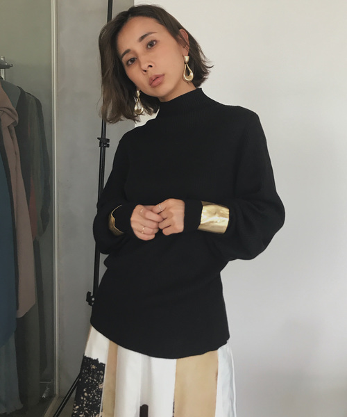 着回し力抜群のシンプルニット。 パフスリーブが女性らしいシルエットし仕上げてくれます。 甘すぎないデザインなので、AMERIのボトムに合わせやすい使い回しの効くアイテムです。 ウールが少し入っていますが、柔らかい風合いなので、チクチク感は気になりません。
