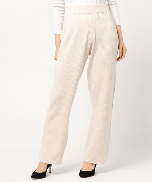 肌触りの良い柔らかなリブ素材のニットパンツ。 リブ編みが縦のシルエットを強調して脚をすっきり見せてくれます。 ウエストはゴム仕様なので、リラックス感のある快適な履き心地。 程よい幅で上品に仕上げ、マニッシュになりすぎずに程よい女性らしさを演出してくれます。 オンオフ問わず活躍度の高い便利なアイテム。