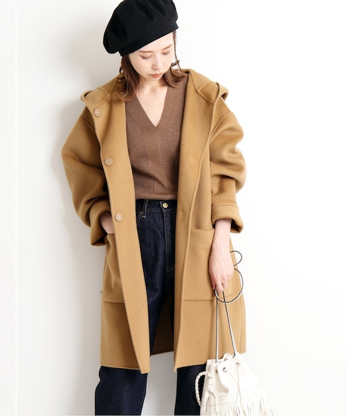 ●お届け予定:10月中旬●限定数量に達し次第、締め切りとなります【2019AW】IENAHamiltonの二重織ビーバーで作ったリバー仕立ての贅沢なコート。こちらはゆったりとしたフードコート。トレンドが戻りつつあるショート丈で仕上げました。大きめのポケットもアクセントになっています。さらっと羽織れて、軽くて暖かいリバーコートの着心地を存分に楽しめる一枚です。※シリーズもございますロングコート(品番19020900009030)**********************透け感: なし裏地: なし伸縮性: なし光沢感: なし生地の厚さ: 普通**********************【スタッフ着用コメント】《スタッフB》年齢:20代後半/身長:156cm/体型:普通/普段サイズ:M/着用サイズ:38サイズ感:着丈は膝ぐらいまで。全体的にゆとりがあるので厚手のインナーを着てももたつかなそうです。素材感:しっかりとしていて、程よく厚みのある素材。着心地:裏地がないので楽に着られました。《hareko》年齢:20代後半/身長:165cm/体型:細身/普段サイズ:S~M/着用サイズ:38サイズ感:袖丈は少し折り返しても手の甲にかかるくらいの長さがあります。着丈は膝丈くらい。素材感:くたっとはしていませんが、柔らかめの素材感。着心地:重たさもあまり気になりませんでした。アームホールにゆとりがあるので、ある程度厚手のニットを着ても袖が通し易そうです。**********************※取り扱いについては、商品についている品質表示でご確認ください。こちらの商品は、IENAでの取り扱いになります。直接店舗へお問い合わせの際はIENA店舗へお願い致します。※重さについて38サイズ...930g着用スタッフ身長:165cm 着用サイズ:38詳細着用スタッフ身長:165cm 着用サイズ:38【注意事項】・お届け予定日、仕様が変更する可能性がございます。・サイズ表記はあくまで目安となります。・その他の予約商品、通常商品との同時決済はできません。・お客様への発送が店頭販売より遅れる場合もあります。・追加生産商品は、一部の店舗、通販で販売中の場合がございます。予めご了承下さい。
