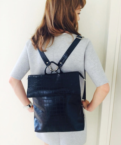 Kastane(カスタネ) クロコの型押しになっているラグジュアリーなバッグ。なんと4wayで使える優れもの。カジュアルなスタイリングにはリュックで、レディライクなスタイリングにはショルダーで♪その日の気分に合わせて使って下さい♪