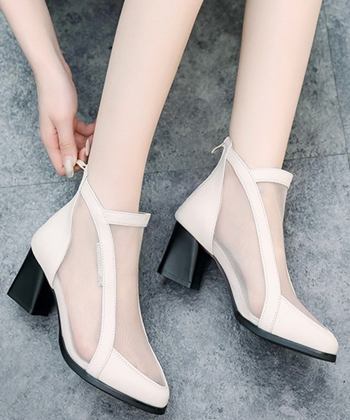 メッシュ素材が旬な足元を演出するブーツ★ 美脚と歩きやすさを兼ね備えた6cmヒール♪ 雨の日も安心なノンスリップ加工も魅力です! プチプライスなのも嬉しいポイントです。