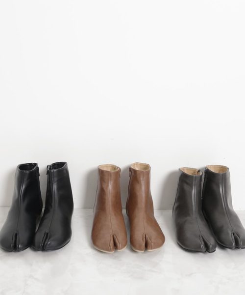 トレンドの足袋ブーツのフラットタイプ。スムース調の素材にベーシックなカラーで、あらゆるコーデに合わせられます。マキシワンピなどの足元にチラ見せで履くのもおすすめ。【素材・サイズ感】S~Lの3サイズ展開。柔らかい履き心地で、ナチュラルカラーで取りそろえたスムース調のブーツです。
