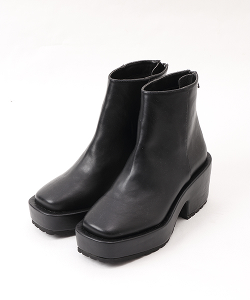 厚みのあるソールが存在感を放つブーティ。四角いソールもポイントの一つです。シンプルなデザインながらこだわったアイテムです。 どんなコーディネイトにもはまる1足です!