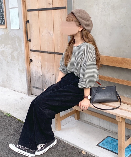 メンズセレクトのボーダートップス。 細ボーダーで華奢見えし、メンズアイテムなので 男の子も着ていただけます。 袖や着丈が長めなので女の子が着ると ゆるっと古着っぽく着ていただけます。 ※袖は結構長めです。 ※細ボーダーなので色味の違いが分かりにくいですが 白地に黒ボーダーと白地に茶ボーダーです。