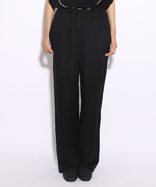 i(アイ) ワイドシルエットにリラックスムードが漂うパンツ。ガーゼ素材で着心地も抜群です。カットオフした裾もポイントです!
