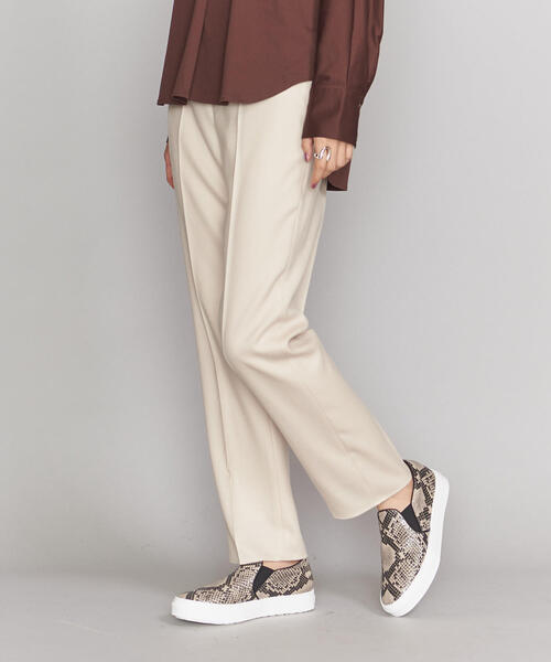 ほんのり起毛感のある上質な風合いに、センタープレスのきいた、すっきりとしたスリムなシルエットが特徴のサキソニーパンツ。 股上は深すぎず程よい設定で、旬のトップスインも様になります。 ウエストはラフ過ぎず楽に着られるバックゴム仕様。 裏地付きで透けも気にならず、きれいめなONスタイルからカジュアルコーデまで幅広いシーンでご活躍頂けます。 同型で、 ・裏地なし カラー:ベージュ(品番:1614-144-5106) ・裏地なし ハウンドトゥースチェック(品番:1614-144-5107) もございます。 店舗へお問い合わせの際は、全国のBEAUTY & YOUTH各店舗まで下記の品名/品番をお申し付け下さい。 品名:RD W/SAXO SLIM PT LNR 品番:1614-144-5097