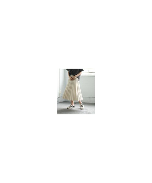 ◆トレンドのプリーツデザインが特徴のニットスカート 【特徴】 プリーツ特有のふわっとした揺れ感のあるニットスカート。 安心感のあるひざ下丈なので普段使いはもちろん、ON/OFF両方 使いやすい万能スカートです◎ 合わせやすいベーシックカラーと柔らかい色味のブルー、イエローのご用意です。