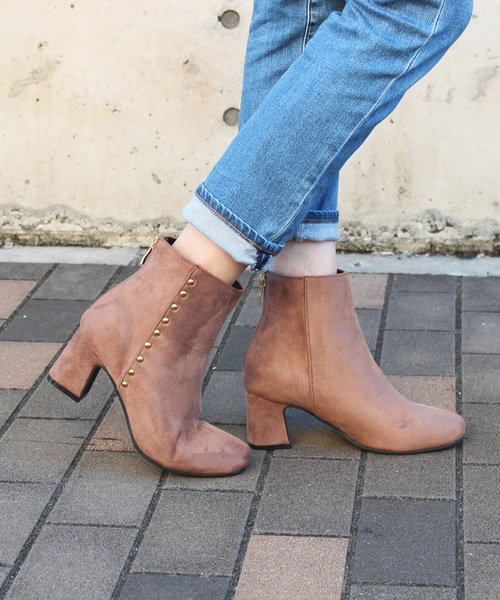 サイドのスタッズとバックファスナーがアクセントのショートブーツは、履くだけで格上げコーデに!トレンドのスクエアトゥ×チャンキーヒールの組み合わせはデザインと履きやすさのバランス◎キチンと感のあるデザインで、いつものコーデにプラスするだけで大人っぽい印象に。 アッパーのセンターにある縦に入った切り替えラインがシャープな印象を与えて足を長く華奢に見せてくれます。 足が痛くなりにくく疲れにくい厚手クッションインソールと裏材のサイドやつま先裏はジャージクッション素材で足当たりやわらかな履き心地。 メッシュ素材の中敷で蒸れにくく滑り止め効果も◎中底部分にクッション材が入っているので、衝撃吸収に優れ地面からの冷気も防いで暖かいです。 見た目だけでなく履き心地もこだわった作りになっています♪ < サイズ詳細> ■S (22.0~22.5cm)■長さ:23.4cm/ワイズ:21.8cm/幅:7.9cm/ヒール高さ:6.6cm/筒丈:11.7cm/履き口周り:26.0cm ■M (23.0~23.5cm)■長さ:24.4cm/ワイズ:22.5cm/幅:8.0cm/ヒール高さ:6.6cm/筒丈:12.2cm/履き口周り:26.5cm ■L (24.0~24.5cm)■長さ:25.4cm/ワイズ:23.2cm/幅:8.1cm/ヒール高さ:6.6cm/筒丈:12.7cm/履き口周り:27.0cm ■LL (25.0~25.5cm)■長さ:26.4cm/ワイズ:23.9cm/幅:8.2cm/ヒール高さ:6.6cm/筒丈:13.2cm/履き口周り:27.5cm ※サイズスペックについては、VivianCollection独自の方法により採寸しております。