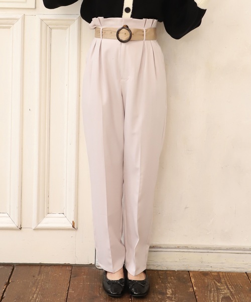 ~NICECLAUP 2019 Autumn Collection~ ■細見え効果抜群のテーパードパンツが登場! 配色ベルトがポイントになったハイウエストパンツ。 バックルがべっ甲になった配色ベルトがセットになっているのでおしゃれ見えする事間違いなし!! センタープレスが大人きれいな印象で、スタイルアップを叶えてくれるハイウエストパンツ。 ウエストの後ろがゴムになっているので楽に履けるのが嬉しいポイント。 テーパードのシルエットがすっきり引き締まって見えるデザインなので履くだけでこなれた印象になる優秀アイテム! ■スタイリング ガーリーなブラウスで大人フェミニンに。 ビッグシルエットのTシャツやトレーナーと合わせて抜け感を出しても◎ キャミソールやビスチェを合わせて、ゆったりとしたシャツやカーディガンを羽織ると今年らしいトレンドスタイルに、、。 足元はブーツやバレエシューズなどのきれいめな靴を履くとこなれた雰囲気になります。 ※サンプルでの撮影のため、実際のものと仕様や色が異なる場合があります。 ※室内、室外での撮影のため実際より明るく映っていたり、暗く映っていたりする場合がございます。 ※お取り扱い表示を必ずご確認ください。