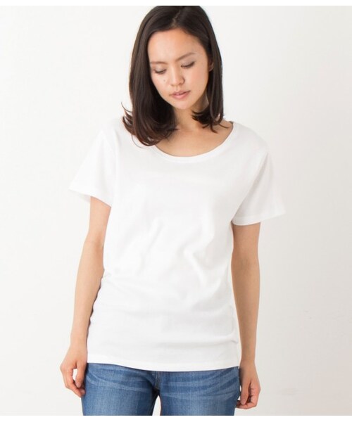 オーガビッツUネックTシャツ。ル ジュン WOMEN'S。【定番のUネックT!!】もっとも定番なUネックTシャツ。コットン100%の素材は、肌ざわりもよく、速乾性にも優れたアイテム。女性らしいラインを大切にし、一枚だけでさらっと着用いただけます。シンプルにタイトデニムパンツや、ショートパンツと合わせてカジュアルにスタイリングするのがおすすめです。