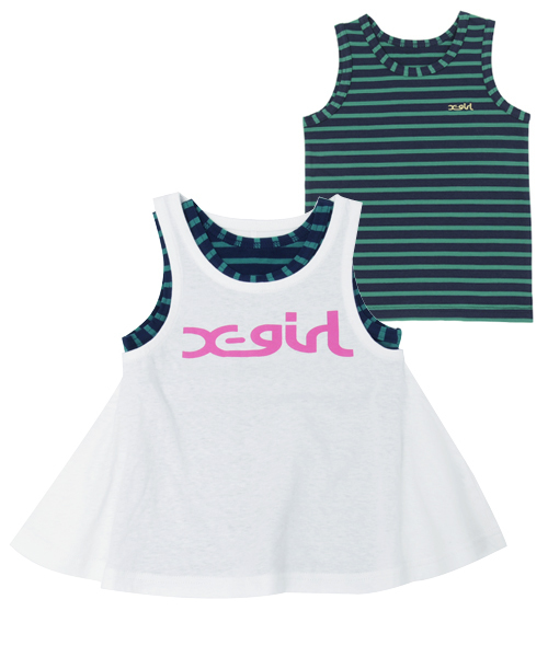 フレアーなタンクトップとボーダータンクの2枚セット。タンクトップは胸元にX-girlロゴ刺繍です。女の子もワンピだけでなく、ショートパンツスタイルで可愛くコーディネートを楽しんで!X-girlとデザインリンクアイテム! X-girlのアイテムはこちら! ※12M~3T左肩空きあり サイズスペック 【TEE】 12M バスト:57 着丈:31.5 袖丈:10 2T バスト:59 着丈:34.5 袖丈:11 3T バスト:61 着丈:36 袖丈:11.5 【TANKTOP】 12M バスト:54 着丈:34 2T バスト:56 着丈:37 3T バスト:58 着丈:39