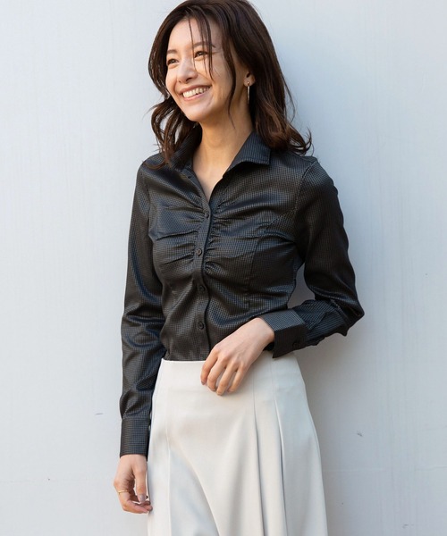 細やかな変形千鳥格子柄が目を引く長袖シャツ。控えめなサイズの柄にすることでビジネスシャツとしても活躍し、ジャケットやカーディガンのインナーにも合わせやすい一枚です。デコルテを美しく、首元を華奢に見せるナラカミーチェならではのスタンドカラーが魅力です。生地には上品な光沢感があり華やかな雰囲気も演出。キックバック性に優れ、ソフトな風合いのため着心地も快適に。前立てのギャザーも女性らしいシルエットをつくります。・ストレッチあり・透け感なし・カラー展開はブラック(黒)、ボルドー・サイズ展開は0(S)7号・1(M)9号・2(L)11号【 NARA CAMICIE 】イタリア生まれのシャツ・ブラウスブランドNARA CAMICIE(ナラ カミーチェ)レディースを中心に、イタリアならではの豊富なデザインと多彩なカラーバリエーション、女性らしく見せる立体的パターンで美しいシルエットが特徴です。シャープなシャツからフリルやレースをあしらったブラウスはスーツのインナーやオフィス、フォーマルなコーデと幅広く活躍!●お買い物をお得にもっと楽しく!上手な活用方法>>>▼商品のお気に入り登録▼完売カラーの再入荷通知や、ラスト1点の通知、プライスダウンしたセール通知も受け取ることができます。▼ブランドのお気に入り登録▼新作や再入荷等、いち早くブランドのお得な情報を受け取ることができます。