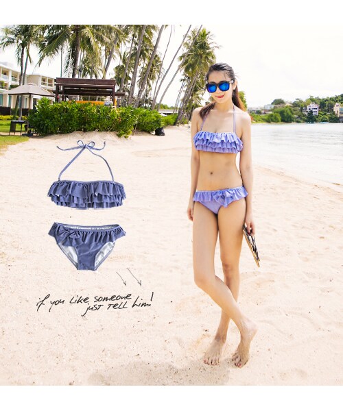 橫紋荷葉擺兩件式泳衣清新活力的海洋風配色細肩綁帶可隨意拆下變身平口荷葉造型增添性感※ 比基尼私人物品,收到後請先剪查有無瑕疵 不接受穿著後瑕疵或是寄錯等退換貨 皮膚敏感的買家請考慮再下標