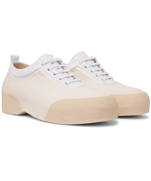 Dries Van Noten's sneakers may seem like your staple white pair at first, but look closely and you'll notice they have a wrapped silhouette for a distinctly different finish. Made in Spain from easy-to-clean rubber reinforced at the toes and heels with tonal panels, this minimalist pair is grounded on flatform soles for subtle lift. Use the tabs to avoid breaking down the padded collars. Shown here with Dries Van Noten sweater, Dries Van Noten trousers, SAINT LAURENT T-shirt. Please note, shipping restrictions apply.