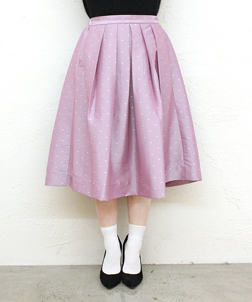 Omekashi ドットの様なサテン刺繍が施されたフレアースカート。玉虫色のカラー展開が可愛いので注目して下さい。ニットとのコーディネイトにお勧めです。